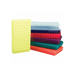 [SSIB5320-29S] 96-Place Flipper Rack with Clear Lid, 213 × 118 × 50 mm, Assorted Fluorescent Colours (SSIBio)