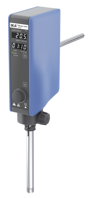 High-performance dispersing instrument with electronic speed control from 3,000 – 25,000 rpm for working volumes of 1 – 2.000 mL (H2O).