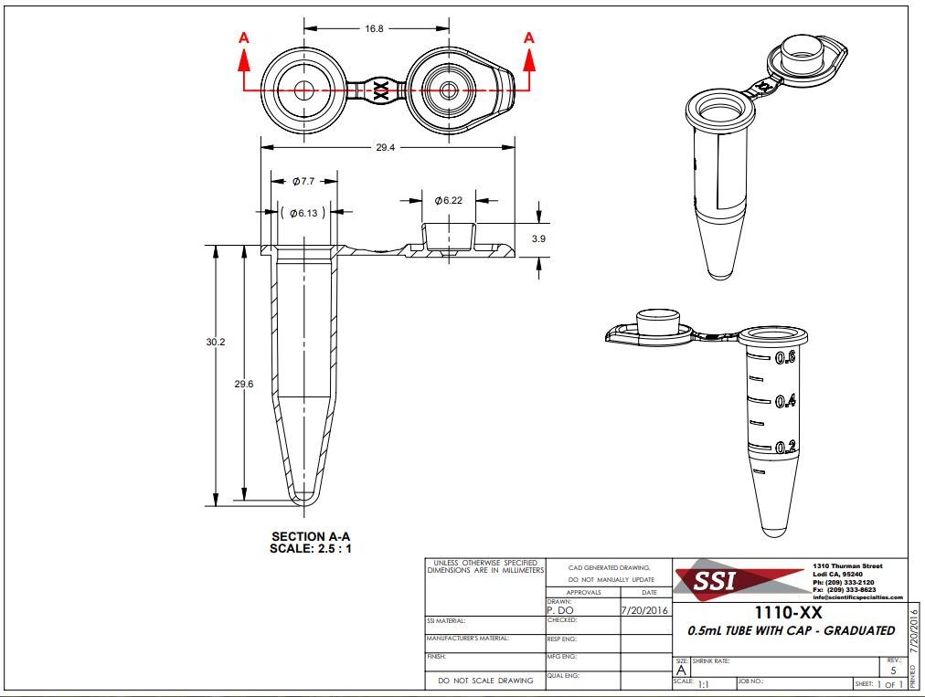 Produced in 0.5 ml, 1.5 ml and 2.0 ml volumes.