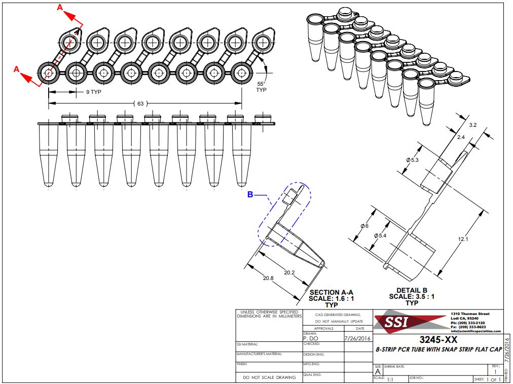 [SSIB3245-00S] 0.2 mL Strip of 8 Tubes, Flat Cap (SSIBio)