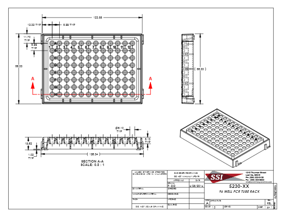 [SSIB5230-23S] PCR WORK UP RACK - 96-WELL, WITH LID FLUORESCENT ORANGE (SSIBio)
